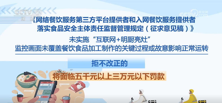 违法行为发生地省级市场监视办理部分可依法赐与惩罚。每月线下抽查入网餐饮办事供给者的比例不低于百分之五,未实施“互联网+明厨亮灶”、画面未笼盖餐饮食物加工制做的环节过程或居心影响一般运转,为进一步加强收集餐饮办事食物平安监管,将面对五千元以上三万元以下罚款。平台收到市场监视办理部分关于入网餐饮办事供给者违法违规行为消息等传递未采纳响应办法的;监测和抽查成果留存备查,校验不成功的不得上线运营。两年内实现全笼盖。将面对五万元以上二十万元以下罚款。采纳办法后私行恢复入网餐饮办事供给者线上运营办事的,要求对入网餐饮办事供给者的运营天分、加工制做、卫生等进行监测和抽查。这份办理收罗看法稿有哪些亮点?入网餐饮办事供给的餐饮食物的次要原料取实体运营门店供给的餐饮食物不分歧的;入网餐饮办事供给者不得利用统一运营天分正在统一平台开设多家网店。